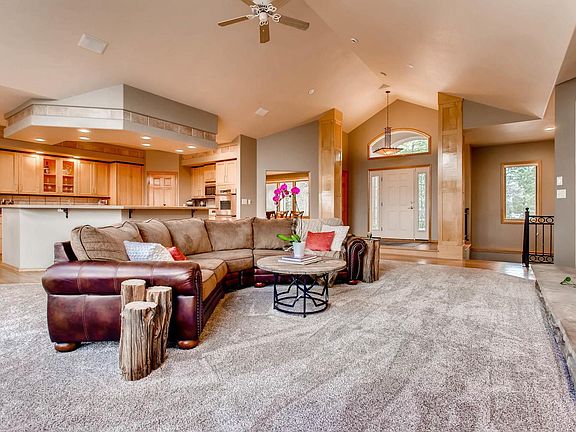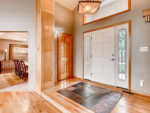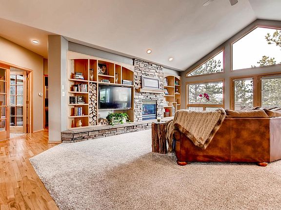 This lovely custom home is situated on 2.76 acres overlooking Monument Lake! Entryway with slate tile, hardwood and two wood columns lead you to the vaulted great room with custom built-in entertainment center, staked stone gas burning fireplace and walk-out to deck and lake views. The formal dining room has a tray ceilings and the office boasts French doors and includes a built-in bookcases plus a window seat. The open gourmet kitchen has a huge island with gas cooktop, stainless steel appliances, hardwood floors