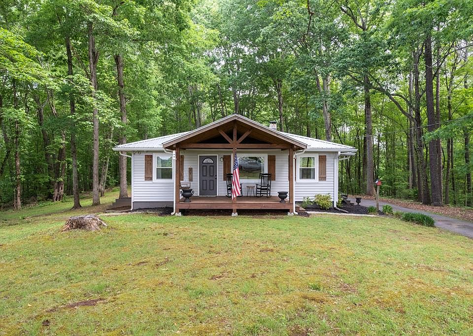 Nestled in the tranquil Clayton Community of North Canton, this charming 1962 ranch home sits on a sprawling 2-acre lot, beautifully marrying country charm with modern conveniences. Within its cozy 1,268 sq ft layout, you'll find three bedrooms and two well-appointed bathrooms, each space thoughtfully updated to enhance comfort and functionality. The home features all new double-pane vinyl windows and a sturdy metal roof, ensuring durability and efficiency. The living room has been transformed with a freshly white-washed brick mantle, where the old wood-burning stove once stood, creating an inviting and bright atmosphere. A new back door has been installed, and the addition of a rustic wood porch swing, perfectly matched to the porch, offers a quaint spot for relaxation. In the kitchen, an industrial 55-gallon water heater and a sophisticated under-sink three-part water filter system provide modern conveniences that cater to both taste and necessity. The property's septic system has also been completely renewed, ensuring peace of mind for its new owners. Outdoor living is reimagined with the removal of the old chain link fence and the creation of a meticulously designed gathering area, complete with a burn pit and log seating — an ideal setting for entertaining or serene evenings under the stars. Enhanced security measures such as alarms, cameras, window sensors, and glass break sensors have been integrated throughout, providing both safety and comfort. It also includes a 10x12 outbuilding and a versatile 2-car carport/storage building, further adding to its functionality and appeal. This home is not just a place to live but a sanctuary that keeps city conveniences within easy reach, while still offering the peace and beauty of country living.