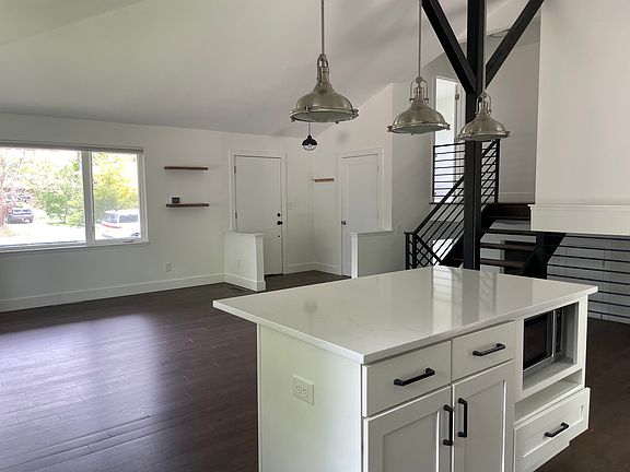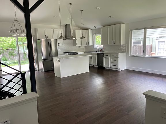 Welcome home to this stunning property that boasts an abundance of natural light, bringing the outdoors in and creating a bright and airy atmosphere throughout the space. With its large windows and high cathedral ceilings, this home is designed to maximize natural light and provide the perfect outdoor indoor living space. The open floor plan creates a seamless flow between the living areas, making this home perfect for entertaining guests. The cozy wood fireplace provides a warm ambiance during chilly evenings. The spacious kitchen is a chef's dream, featuring beautiful quartz countertops, stainless steel appliances, and ample storage. The spacious bedrooms offer a peaceful retreat at the end of a long day. Outside, you'll find a private backyard oasis with mature landscaping, and fruit bearing apple and peach trees. Renter is responsible for Gas, Electric and Trash Removal. No Cats allowed, well behaved dogs ok.