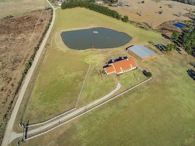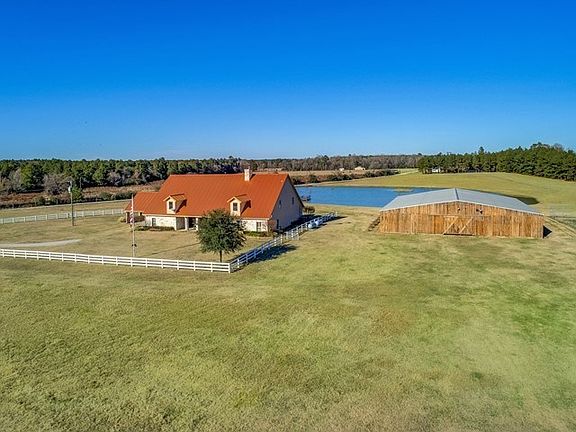 Stunning 207 acre ranch in the Davy Crockett National Forest located just north of Groveton. A lot to offer anyone looking for an ideal hunting resort/timber farm or family estate in the country. Beautiful custom built 6,255 sq. ft. home sitting on lovely rolling acreage. 6 BR/5.5B with 35' ceiling and fireplace. Two balconies overlook the living room and provide stellar views of the property which includes a lake in the back yard. This home is perfect for entertaining friends and family. High fenced with 2 lakes and 2 ponds.