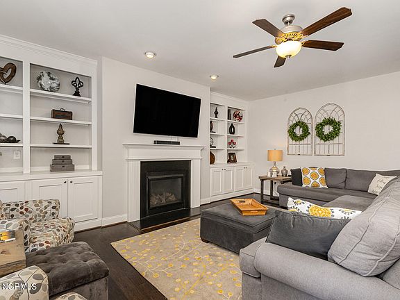 - Master Downstairs, Walk-in Closet(s), Tray Ceiling(s), High Ceilings, Entrance Foyer, Bookcases, Kitchen Island, Ceiling Fan(s), Pantry, Walk-in Shower, Blinds/Shades, Gas Log, Walk-In Closet(s)