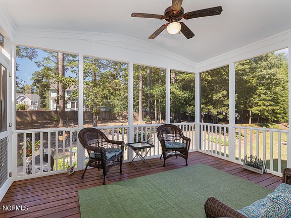 Welcome to this stunning 4-bedroom, 3.5-bath home in the highly sought-after Brighton Forest neighborhood, a vibrant pool community in Apex, NC. This thoughtfully designed home offers a spacious primary bedroom and en-suite bath conveniently located on the main floor, along with an adjacent laundry room. The main level greets you with an inviting foyer, leading to a formal dining room with coffered ceiling, perfect for gatherings. The heart of the home is the gourmet kitchen, featuring an oversized center island, gas range, and pantry, all overlooking the cozy family room with custom built-ins and gas fireplace. Step outside to the screened porch or enjoy the outdoors on the paver patio—ideal spaces for relaxing or entertaining. Upstairs, you'll find 3 additional spacious bedrooms, 2 full baths, a versatile bonus room (could be 5th bedroom), and a dedicated home office—offering plenty of space for everyone. Additional highlights include a garage with ceiling storage, and peace of mind with a termite warranty and recent HVAC tune-ups. Enjoy the social perks of Brighton Forest with a thriving social committee and neighborhood activities. The welcoming front porch completes the charm of this exceptional home. Plantation Shutters on front room windows. Termite warranty. 2015 Parade of Home entry.  Located just minutes to the newly opened section of 540/Triangle Exressway and 401 as well as Costco and Wake Tech.