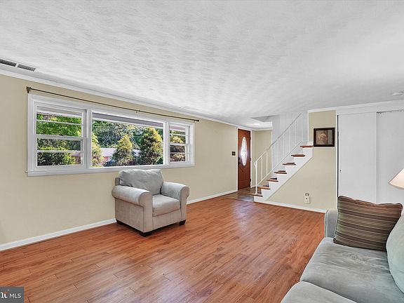Raised Rancher with beautiful perennial plantings - blueberries, grapes, paw paw trees, apple tree, peach tree, asparagus, strawberry bed, and more. The native plants attract beautiful monarch butterflies and others to your yard. Raised garden beds in the front and back yard. Spacious living room with hardwood floors and a bay window. Kitchen features an updated butcher block breakfast bar, stainless steel appliances with a newer stovetop and dishwasher, upgraded faucet and new flooring. Kitchen opens to the dining room with wood floors where you can walk out the upgraded French Doors to the covered patio and fenced yard. The French Doors have a deadbolt and a new keypad lock so you don't get locked out when you use your secure code. Lower Level Family Room has a fireplace that wasn't used by the current owner and needs a liner or an insert. Newer HVAC. Insulation was added to the attic. Metal roof with 50 yr warranty, freshly painted exterior shutters and upgraded fire-rated doors to garage (2 of them) with deadbolts. Convenient to shopping and I-83. Check out the amazing walk-through video for this property!