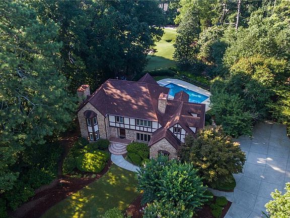 Priced well below appraised value! This custom built 6 bedroom / 4.5 bath Tudor overlooking the 4th green & water of Country Club of Roswell is arguably one of the prettiest backyard views! This well-maintained home sits on close to 1 acre flat lot w/ a pool & a fenced in backyard! Oversized family room, fantastic vaulted sunroom! Sensational views from dining room, kitchen, great room & MB! Fresh paint throughout, new carpet, refinished hardwoods & new driveway! Front yard has a fabulous water feature, exterior has outdoor lighting, priced for modern updates!