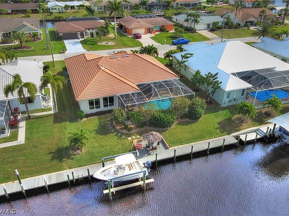 Mere minutes to river with no bridges, no lock - nothing holding you back from the open waters of SW FL. Don't spend your day stuck in the canals when you can own this gorgeous direct gulf-access home, one turn & just over a half mile from the river. You're sure to find all the interior space you need at nearly 2,200 sq.ft. under air and with western exposure, you will love spending your days enjoying the beautiful Florida sunsets from your outdoor living space as well, which includes a large lanai w/pool & spa, spacious dock/captain's walk with boat lift and a tiki hut. Heading back inside through one of several sets of sliding glass doors, you'll find a well designed layout that is perfect for entertaining or hosting out-of-town guests. With multiple large living areas, several different dining locations and 2 guest rooms / guest bath that are off away from the master suite, providing privacy for all. This home has had a successful past as a sought after vacation rental and would work great as such, on top of the obvious benefits it provides an owner occupant. If you've been trying to find a well maintained, quick water access home, without breaking the bank, here's your chance!