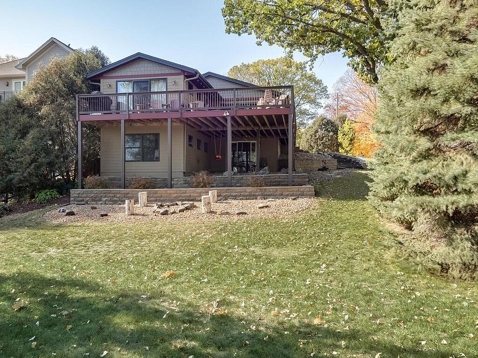 Looking for a beautiful home on Lake Minnetonka, featuring a large primary bedroom with onsuite bathroom, walk in closet, and captivating sunrise views of the bay. This home includes 5 bedrooms, 3 bathrooms, updated eat in kitchen with stainless steel appliances and center island. While entertaining enjoy great views of the lake on your huge 26'x17' maintenance free deck or enjoy the game in your in your lower-level amusement room with fireplace and bar; you'll have plenty of room to enjoy the lake life. The lake is just a short walk away down through the gentle slope of a yard to your covered boat garage. And since it's on the channel, you'll never need to pull your dock or boat lift for winter! The insulated and heated garage take the edge off winter and also includes bonus storage space above.