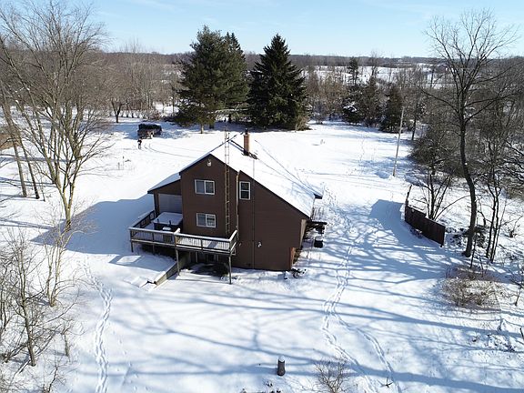 Calling all hunters! This property is for you! 3-4 bed, 2.5 bath home with 2 kitchens, walkout basement, deck with hot tub, Generac whole home generator, a 45x54 pole barn, 20x24 pole barn both with concrete floors and electric, all sitting in the middle of a 40 acre parcel of woods with a stream, pond and total serenity. This is a deer hunters paradise. Use as your year round home or your hunting lodge. The property is beautiful, and with a bit of touching up, the home would once again be the stunning custom built home that is once was. If you are looking for that home tucked back from the road amongst the beauty of nature, don't miss out on this one. Call the listing agent today for your personal tour.