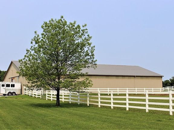 Bring your horses and classic cars! Newer custom ranch on over 8 acres with an impressive 80x120 outbuilding in Liverpool Twp. This beautifully appointed 3 bedroom, 2.5 bath home with open floor plan, vaulted great room, new granite kitchen and sun room with access to the newly installed paver patio with fire pit is sure to impress. Entertaining will be a breeze with a large foyer and formal dining featuring hardwood floors and crown molding. There's a large first floor laundry with direct access outside plus a partially finished basement with garage access smartly designed to keep all the muddy clothes out of the main living area. Solid wood six panel doors, geothermal heat make this home efficient. 6 matted stalls with windows, concrete aisle, tack room, wash rack, large hay loft, white vinyl fencing complete with a 60x88 indoor riding arena are ready for the discerning equestrian. Not to be outdone the 32x60 shop side of the outbuilding with concrete floors, insulated walls and ceiling and 14'x12' insulated garage door is ready for heat and ready to store your classic cars, RV or boat. Perfect for a small business owner that needs storage and set nicely back off the road for privacy. A creek, small hay field and wooded views with no direct neighbors on a property that has seen tons of upgrades in the last two years cannot be duplicated at this price. Call for your private showing today!