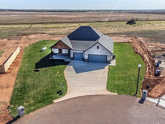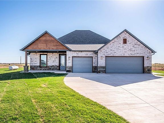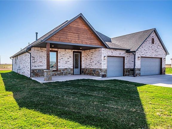 Check out this new construction home adjacent to Cedar Valley Golf Club. Situated on more than 3/4 acres, you have the privacy you desire with close proximity to your favorite hobby. This open floor plan is light and bright with large east facing windows and a gas fireplace in the great room, while white cabinetry, quartz countertops, and wood look luxury vinyl take center stage in the heart of the home. 9 and 10 foot ceilings throughout contribute to the spacious feel. With a freestanding tub in the primary bath, and direct access to the gorgeous patio with a wood burning fireplace from your bedroom, you may never want to leave! Water well, aerobic, & propane. OUTBUILDINGS & CHICKENS ALLOWED! Ask about the optional golf membership to Cedar Valley! Call for your private showing today. You can also check out our other homes in the neighborhood. Only one mile off Hwy 74 and Hwy 33. An easy commute to OKC or Guthrie. From Hwy 74 and Industrial, go one mile East to entry.