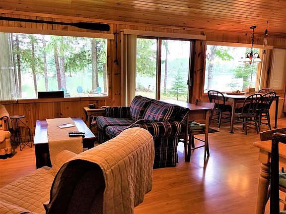 Echo Lake - You can have it all at this cozy Northwoods year round home having awesome Northwoods setting, in-town location & on full recreation lake w/ great fishing, water skiing & boating! This home has breathtaking lake views from the open living, dining & kitchen area with large lakeside windows & patios doors plus beautiful T & G pine walls & ceiling. Plenty of room with 2 bedrooms & the remaining 2 rooms are 6 x 6 in size, with beds but no closets. Has full bath, partial basement w/ washer, dryer, natural gas forced air furnace & work bench area. Exterior has wood siding, metal roof, detached 2 car garage, nice pier, fire pit area. Beautiful sandy beach with 50 ft shoreline on Echo Lake, 0.4 acre land w/ towering pine & balsam trees for a true northwoods setting yet in town location. Echo Lake is a 220 acre full rec lake, max. depth of 25 ft offering great musky, walleye, northern, bass & pass fishing PLUS large enough for boating & water skiing!