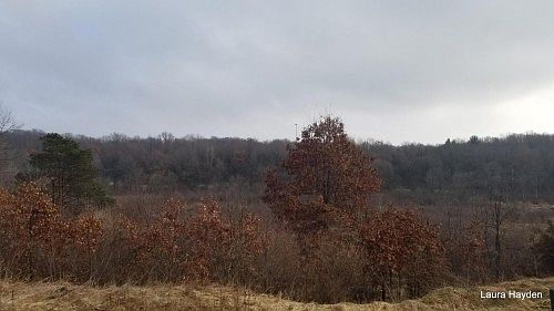 The view here is amazing. Looks out to a low area and bordered by mature trees. Surrounded by farm land. Very private location. This 3 bedroom has a master suite with a bonus area off the bedroom that would be a great nursery/office. Deep walk in closets. Master bath has soaking tub. Large home featuring family room with wood burning fireplace and dining area with sliders to deck. Detached 2 stall garage.
