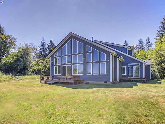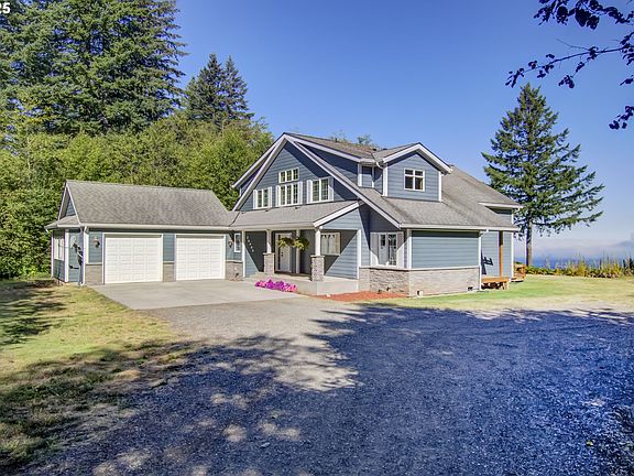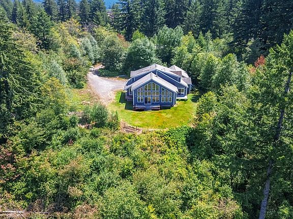 Experience breathtaking views from the comfort of your own home—including direct sightlines to Mt. St. Helens—all visible even from the first floor of this stunning retreat nestled on 3 wooded acres in scenic Brush Prairie. This beautifully designed 4-bedroom, 3.5-bath home offers 2,624 square feet of elegant living space, where comfort meets architectural charm. The main level features both the spacious primary suite and a second bedroom (or den) with dramatic floor-to-ceiling windows and vaulted ceilings that bring in natural light. Upstairs, two more vaulted-suite bedrooms provide privacy and character, perfect for guests or family. The living room is a true showstopper with soaring 20-foot windows and a cozy wood-burning stove—ideal for enjoying crisp PNW evenings. A chef’s dream, the kitchen boasts a large butcher block and slab granite island, with abundant workspace and style. Throughout the home, you’ll find approximately 1,500 square feet of real hardwood flooring and natural wood trim, enhancing its warm, organic feel. Step outside to enjoy three generous decks, ideal for entertaining or unwinding in serene privacy. With a well and septic system, plus an oversized 600-square-foot attached garage, this home is both self-sufficient and spacious. A rare opportunity to own a truly unique property that combines luxury, nature, and unforgettable views.