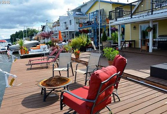 Floating Home, 3bd/3ba, 3 yrs new, outside center slip. Slip fee $45K (can be fin. sep. w/owner) rare moorage that allows slip to be larger (25% longer) in length to accommodate larger home and a huge deck! Excellent location, 25 min to downtown and Intel/Nike, 1 min from stores/restaurants, covered outside area with 2nd level deck, outdoor shower tied to commercial filtration system for whole house. Granite & travertine thruout.