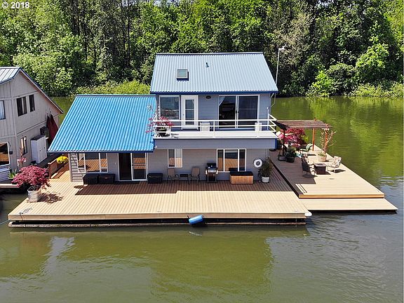 RARE opportunity to own remodeled floating home w/ unparalleled views of river, mountains & Sauvie Island from the downriver end slip. Perfect home for fishing, boating, and observing nature; view flocks of migrating birds, eagles, osprey, sea lions and salmon. Remodeled 1750 sq ft, 2-bed, 2-bath home in 2015, incl a new float w/ steel stringers that was rated 5 + wiring, plumbing, kit appls.Swim float on N side must be moved to E side.