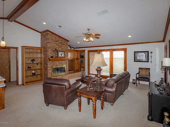 Incredible country property located on 10 acres with private well & septic. Wonderful open floor plan. Keep cozy on the cold winter days with brick wood-burning fireplace in the living area. Open to the large kitchen with an island and eat-in bar, tons of cabinets and a large pantry. Relax with a book in the sitting area in the spacious owner's bedroom. The owner's bathroom has a garden tub, double sinks plus a vanity, shower and walk-in closet. Enjoy the covered patio in mornings to see a beautiful sunrise or in the evenings for some wonderful shade. This is a must see home!