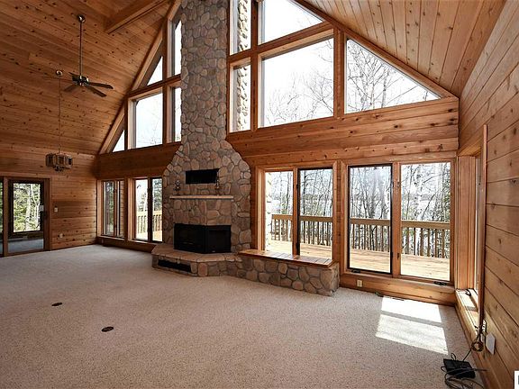 Your Lake home awaits you on the beautiful Trout Lake! This lake home features; 4 bedrooms, 3 bathrooms with 168' feet of firm sandy shoreline. Amazing open floor concept including huge windows with stunning views of Trout Lake. The split rock fireplace makes a grand statement, as well as the cathedral ceilings. Finished lower level with family room featuring an additional fireplace. Attached three stall garage, as well as a detached two stall garage for all your lake toy needs. A must see waterfront property!
