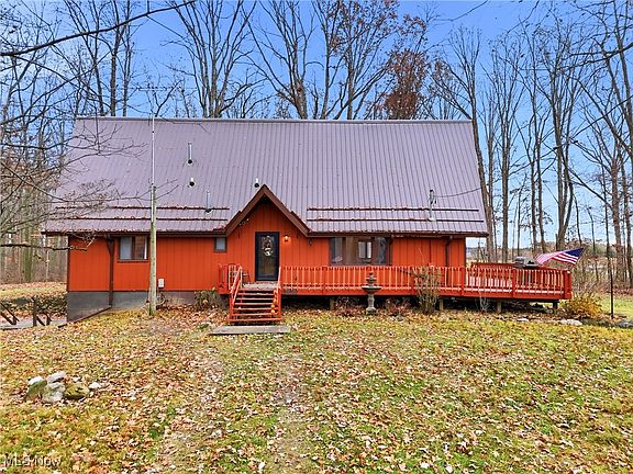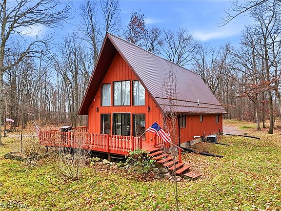 Discover your own private retreat! Nestled on just barely 12.86 peaceful, picturesque acres, complete with a stocked 1-acre lake, rolling wooded surroundings, and wildlife galore. This striking A-Frame home offers the perfect blend of tranquility and potential. The owner has already completed many upgrades including exterior paint, a newer metal roof, gutter guards, central A/C, newer appliances, and more… yet there’s still room for you to bring your vision and make it truly your own! Follow the winding driveway past the barn and fenced area to the inviting deck overlooking nature’s beauty. Inside, the main level features a bright kitchen, 2 bedrooms, a full bath, and a dramatic Great Room with a stunning wall of windows showcasing those gorgeous views! Upstairs, you’ll find a private bedroom and an additional full bath. The walkout lower level features a workshop area and access to the oversized ONE car garage. Enjoy free gas to the home! The barn opens up opportunities for livestock, storage, or your favorite hobby. Whether you're seeking peace, adventure, or a place to grow, this property delivers it all. Don’t miss the chance to make this extraordinary setting your own — schedule your private showing today!