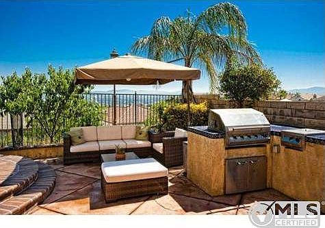 This lovely "Mandeville" home offers, Pool/Spa, View, Downstairs Bedroom and Bathroom. There are many upgrades STAINLESS STEEL APPLIANCES, travertine floors throughout downstairs, hardwood floors in all bedrooms, Granite Countertops, Crown Molding and a Remodeled Bathroom. The gourmet kitchen includes a large Center Island, upgraded Backsplash, Double Oven, and Recessed lighting. Sound system, speakers. The Master Suite offers an open and spacious bedroom, private bathroom with separate oversized tub and shower, double sinks and walk in dual HIS/HERS closets and Balcony with views. The backyard has a built in Barbeque, Pool and Spa and great Views. The third car garage is currently used as an additional room. Can easily be converted back to garage.Great location! Walking distance to Stevenson Ranch Blue Ribbon Elementary school and a small park right down the street.