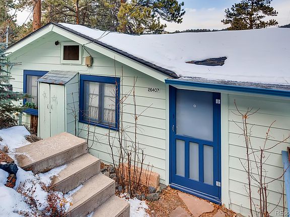 This adorable bungalow is oozing with charm and has been lovingly cared for! The home is in move in ready condition and has so much character. Fresh paint on interior and exterior plus newer roof. Home includes a main level family room plus a rec room area in the lower level that could double as a third bedroom. You'll be surprised by all the storage in every nook and cranny in addition to the basement storage room. Laundry room includes a utility sink and room for an extra fridge. Sunny mudroom leads outside to large fenced, flat yard. Garage fits a truck and has extra storage space for tools and outdoor gear. Great opportunity as a rental, or expand the living space onto the existing foundation addition previous owner constructed. Kittredge is a walkable community with a local park and playground near Bear Creek, shops and restaurants and is only 2 miles from downtown Evergreen amenities. Easy access to I70 or 285 means you can be downtown or further into the mountains in no time!