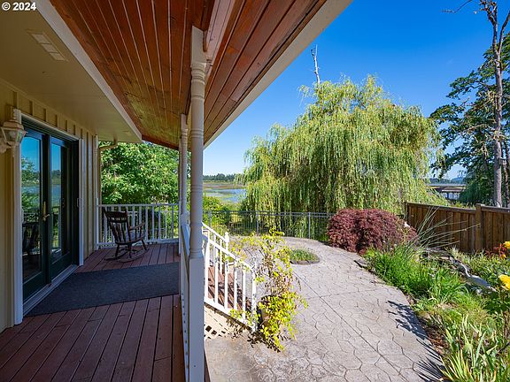OPEN SATURDAY 1-4. Are you in search of a serene and secluded residence with stunning, filtered water views? Your search ends here! This charming Cape Cod style home, all on one level, is nestled in a private location with a picturesque outlook of Fern Ridge Reservoir. The spacious main living area is illuminated by natural light, featuring a vaulted ceiling adorned with exposed beams that enhance the rustic appeal of the property. The living room seamlessly transitions into the dining area, complete with a cozy window seat and a well-equipped kitchen boasting a large center island, granite countertops, stainless steel appliances, disposal, dishwasher, and built-in microwave. A pellet stove provides warmth throughout the home. Adjacent to the kitchen is a convenient mud/laundry room with a washer, dryer, sink, cabinets, refrigerator, and access to the back patio. As you proceed down the hallway, you'll find ample cabinet space leading to the bedrooms. The owner's suite includes double closets, a sliding glass door opening to a covered deck, and an attached bathroom with a corner shower and an antique vanity with a bowl sink. A pocket door connects the bathroom to an additional bedroom. Across the hall, there is a versatile room suitable for a home office, guest room, or flex space. The main bathroom is ADA accessible, featuring a walk-in shower, counters, sink, and a jetted soaking tub. The two-car garage is equipped with openers and built-in storage cabinets. Outside, the property is surrounded by beautiful landscaping, stamped concrete pathways, a patio, and wrought-iron fencing. Residents have the option to access a boat slip and the lake through a voluntary neighborhood association. Professional whole home inspection(s) on file. First American Home warranty is included in the sale. This is an "as-is" sale.All offers to be submitted by 7:00 p.m on Monday with a response time of Tuesday afternoon. Thank you in advance for understanding this is an Estate situation