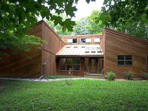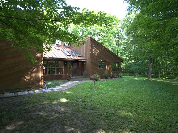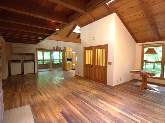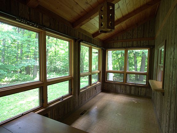Frank Lloyd Wright inspired 3 bed, 2 bath home in the heart of the Loch Lomond Beach Club. Open concept living w/ main fl laundry, large kitchen, 3&4 season porch, & huge deck make this home great for entertaining. Plenty of space for storage or hobby w/ an extra 1.5 car detached garage. Enjoy the bonuses of the Loch Lomond Club! Swimming Pool, Beach Club House w/ a Rec Room, locker rooms, sauna, tennis courts, lounge, water access to the premier Red Cedar Lake, beach, & much more!