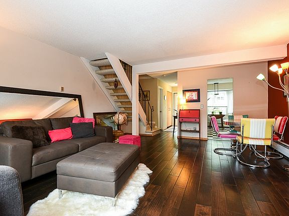 Well maintained corner unit 2BR/2BA 2 story townhome near trails, parks, busline and more. Living room with wood burning fireplace and glass doors to rear patio / private yard area. Light filled kitchen with breakfast bay. Two bedrooms in upper level.