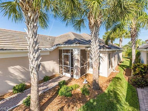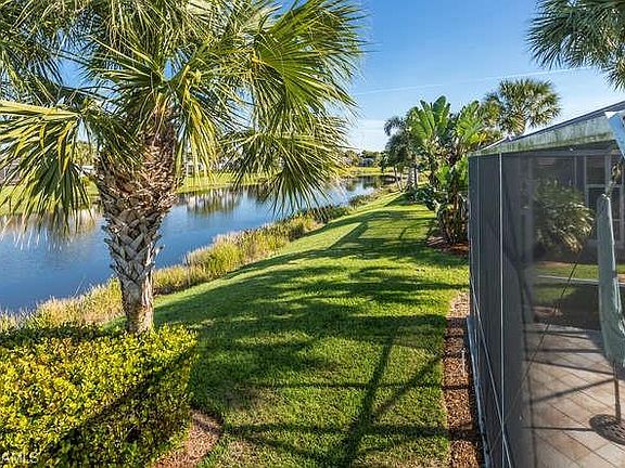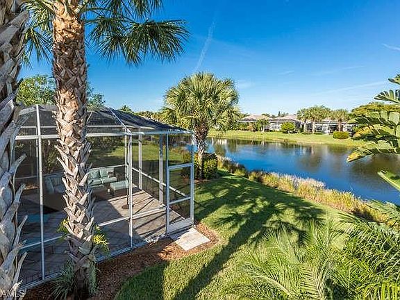 WELCOME HOME TO SANDOVAL: a master planned gated community by award winning developer from Naples. Come live in this resort like community with miles of lushly landscaped paths leading to the community center with a incredible enormous pool, spa, fitness, tennis, basketball, pickleball,two dog parks,playgrounds and full time activity director. The location of the FURNISHED lakefront home cant be beat. You can walk or bike to all of these activities right down the street. This bright coastal home was freshly painted in the great rm +kitchen and has new light LUXURY PLANK floors installed . It also features WOOD cabinets, solid surface counter tops, stain- less appliances and new stainless faucet . Enjoy sunsets and entertaining on enlarged screened and pavered patio with electric storm hurricane protection. View the never ending displays of birds at the shoreline of the lake. This furnished home comes ready to start enjoying the sunny Florida weather. This is a great split floor plan with volume ceilings and a spacious master bedroom to the rear overlooking the lakefront. Come meet new friends and enjoy an Easy lifestyle here with Lawn care, hi-speed and cable included!