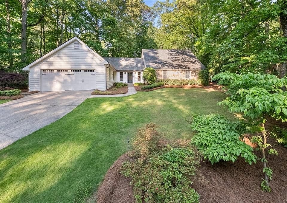 Welcome to your dream home in the highly sought-after Chimney Springs swim-tennis subdivision of East Cobb! This charming ranch-style residence combines timeless elegance with modern comfort, offering hard-to-find main level living. The updated kitchen boasts white cabinetry, stainless steel appliances, a white subway tile backsplash, and light-colored granite countertops with an island. Just off the kitchen, a large breakfast area is perfect for casual dining. The inviting family room features a vaulted and beamed cathedral ceiling with a floor-to-ceiling stone fireplace, creating a warm and welcoming ambiance. Adjacent to it, the formal dining area offers ample space for hosting dinner parties and family gatherings. The spacious primary bedroom on the main level includes a walk-in closet and an en-suite bathroom with dual vanities and a luxurious walk-in shower. A sliding glass door leads directly to the rear patio and backyard. The oversized bedroom upstairs, complete with a full bath, is perfect for a home office, hobby space, guest suite, or an additional family room, providing flexible space to adapt to your needs. Step outside to your private backyard, featuring an expansive patio ideal for outdoor dining and entertaining, and a terraced upper level with a fire pit area for cozy evenings under the stars. The exterior and most of the interior have been recently repainted, and the main level features new carpet in the bedrooms. The main level common areas boast wide-plank, site-finished hardwood floors, adding a touch of luxury to the home. As part of the Chimney Springs community, you'll have access to top-notch amenities including a swimming pool, tennis courts, a playground, and picturesque walking trails. Situated in the heart of East Cobb, this prime location offers easy access to excellent schools, shopping, dining, Downtown Roswell, and recreational options, along with convenient commuting routes to major highways and business districts.