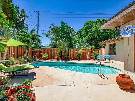 3 Bed, 2 bath corner lot home with a lusciously landscaped tropical fenced-in back yard with swimming pool. Substantial renovations were done in 2012. Between the family room and living room there is an open kitchen with center island, granite counter tops, stainless steel appliances including separate beverage cooler, tons of cabinet space with corner rotating carousel turntables in top and bottom cabinets and large pantry. Master bedroom has en suite with granite counter and double sinks and roomy walk in roman shower. Roof replaced in 2008, A/C in 2012, Pool built in 2001, Water filter system in 2019. Large 1.5 attached garage with Circular driveway. Home comes with 40' concrete pad which was used as a shuffleboard court, but would work great for boat or camper storage. You world also have use of the Shamrock Park & Nature Center with Basketball Courts, Tennis Courts, Play Ground, Restrooms and Nature Trails. For an additional reduced fee you also can have use of the South Venice Ferry, which will transport you over to a quieter part of the Beach. This location is near Shopping & Restaurants and just minutes away to miles of sandy beaches and historic downtown Venice.