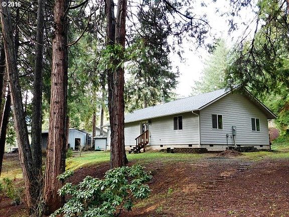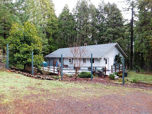 Surrounded by Douglas Fir & Incense Cedar, this Oregon home is located only 8 miles from town! Vaulted living area with open kitchen, granite, bamboo floors, rustic solid wood doors & huge master suite with walk-in closet. Large deck for outdoor living, 2 car carport & detached garage. A gardener's dream!