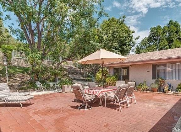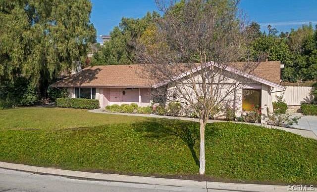 A unique custom built property in a special neighborhood of Orange Hills. The home seats on over a half acre usable and very private property, built around a lovely brick courtyard that epitomizes the California Lifestyle. The property is terraced with mature trees and meandering pathways ready for creative ideas. The body of the home is all on one level, with just a couple of exceptions one being the formal living room with its stunning beamed and vaulted ceiling and cozy fireplace. The volume and beamed ceiling continues into the dining room which is on the main level of the home. An open plan kitchen, breakfast room and huge family room opens to the courtyard, perfect for morning coffee or large el fresco gatherings. The generous and secluded master suite is located in its own wing and opens to the garden. Two of the secondary bedrooms are in another wing of the home. A third bedroom is located just three steps down on the lower level. The property is within the Villa Park School District, the elementary school (Serrano) is designated a California Distinguished School, and Orange Lutheran High School is a very short distance way. This quiet and serene neighborhood contradicts the easy access to shopping and freeways.
