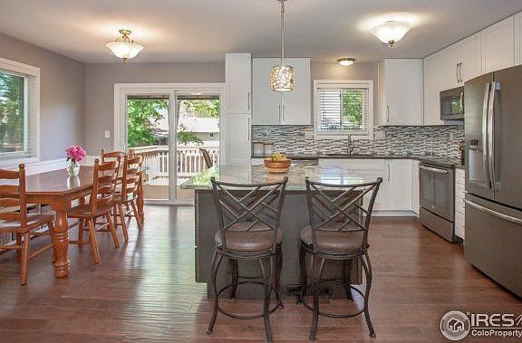 Updated home in SW Loveland. Kitchen and bathrooms updated within last 4 years. New cabinets, granite, appliances and carpet in 2018. Large fenced mature lot includes playhouse, storage shed and garden area. New furnace within last 5 years. Home has been preinspected.