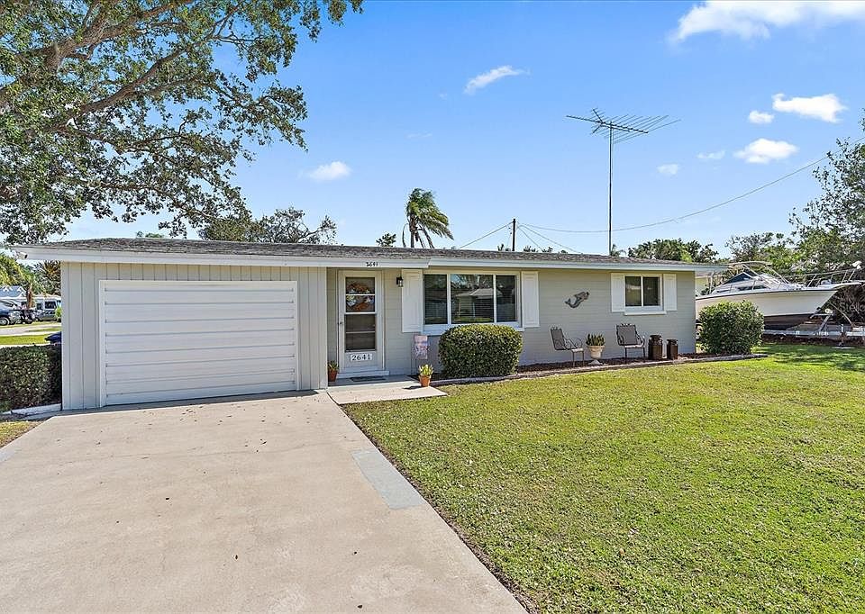 Company coming? Wouldn’t it be NICE to have a space they could have to themselves? Or perhaps you have always wanted a chic-she-shed or a real-man-cave! Or STUDIO! This HOME has that EXTRA BONUS SEPARATE space! The HOME itself is a smidgen under 1000 square feet with 2 good sized bedrooms each with an incredible amount of storage. The custom and smartly designed cooks kitchen has lots of real wood cabinets and miles of granite counters with breakfast bar. The living room has plenty of space and so does the light and bright dining room/sunroom. The dining room could even be used as a den. There is a 1 car garage and INDOOR laundry room with floor to ceiling cabinets. Each window inside the HOME is hurricane impact glass. The entire house has lovely neutral tile. Enjoy the big backyard of this CORNER lot PLUS you have plenty of space to park your boat. There is an extra driveway where you can store your RV. The detached STUDIO was converted years ago and has full bathroom and kitchenette and AC offering so many options for use. The STUDIO is a separate private space not included in the MAIN 2 bedroom, 1 bath HOME. This property is in an "X" flood zone. South Venice is known for NO HOA and boat ramp (access with a nominal fee). Also in South Venice is Shamrock Park and the Venetian Trail (bicycle, walking). Just a few miles to Wellen Park and Cool Today Stadium and just a few miles to quaint downtown Venice, several Gulf of Mexico beaches are about 5 miles away including a Paw Park a DOG friendly beach.
