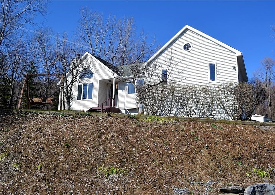 Take in views for miles with this wonderful 4 bedroom 2 bath home situated in the hills of Onondaga County. Vaulted ceilings and an open floor plan create a flow from one living space to the next. Large windows bring in beautiful natural light and create a connection with the outdoors. This home boasts 2 dining spaces and a fantastic finished basement walkout with custom bar, perfect for entertaining. The spacious master bedroom with updated attached bath provides a space for rest and relaxation. Enjoy the backyard on the deck off the kitchen along with a brand new lofted shed. This home has so much to offer so make your appointment today.