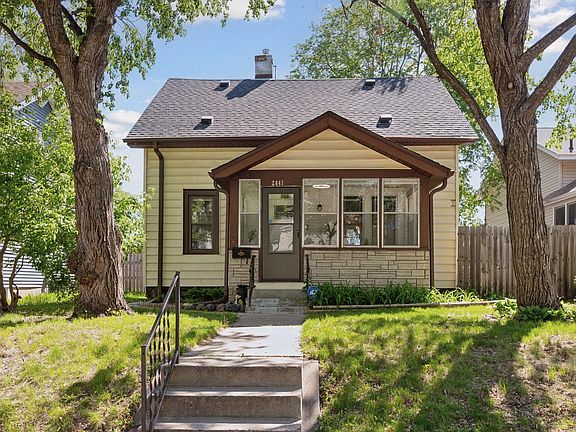 Absolutely Adorable South Minneapolis Bungalow! Welcoming front porch is perfect for sunny mornings, rainy afternoons, and sunset views. Maple hardwood floors throughout most of the main floor. Open living room with plenty of space to gather and a stylish accent wall. Sunny dining room with views out to the back yard and easy access to the kitchen. Updated kitchen with tile backsplash, dishwasher, and range hood that vents outside. Three season back porch just off the kitchen that makes a great mud room. Main floor bedroom with a large closet feels separate from the common spaces and would also make a great home office. Two more bedrooms are found upstairs with maple hardwood floors and sizeable closets. The remodeled upper level full bathroom features a soaking tub, tile surround, tile floors, and built-in linen shelves. The lower level features a finished family room with an egress window that could also serve as a fourth bedroom. The spacious laundry/utility room is also mostly finished and the washer & dryer are only two years old. Low maintenance exterior with vinyl siding, aluminum window wrap, and a new roof in 2024. Wonderful back yard with six foot privacy fence, raised garden beds, storage shed, and concrete patio. The back yard has a perfect mix of sun & shade and will be your new favorite place to be. Current perennial plantings include tulips, lilies, boxwood, and cranberries. Outside the privacy fence you’ll find a concrete driveway with two off-street parking spaces and a chain-link fenced area that could be used as another garden. Great location with easy access to highways, transit, the Hiawatha LRT Trail, and the Midtown Greenway! Plus many shopping, dining, and grocery options are less than a mile away!