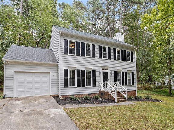 Meticulously maintained and thoughtfully updated, this Brighton Woods classic sits on just over two-thirds of an acre with fiber cement siding, a newer roof from 2020, and all new interior and exterior paint in 2025 that makes everything feel fresh and move-in ready. PRE-INSPECTED. Repair receipts in MLS docs. Hardwood floors run throughout, giving the home a warm, cohesive feel. The layout lives comfortably with a welcoming foyer, a family room centered around a wood-burning fireplace, and a kitchen with quartz counters, recessed lighting, pantry, and a true breakfast area plus a separate dining room for easy gatherings. French doors open to a large deck and a big backyard with a wired 12x12 shed—perfect for storage, projects, or hobbies. Upstairs you'll find three bedrooms, two full baths, and easy attic access for extra storage. With a fiber-cement exterior, architectural shingle roof, this home has been genuinely cared for and it shows. Private septic with public water keeps monthly costs low, and there's no HOA. Tucked away in Apex's Brighton Woods community, it offers that quiet, neighborhood feel while still being close to everything you need.