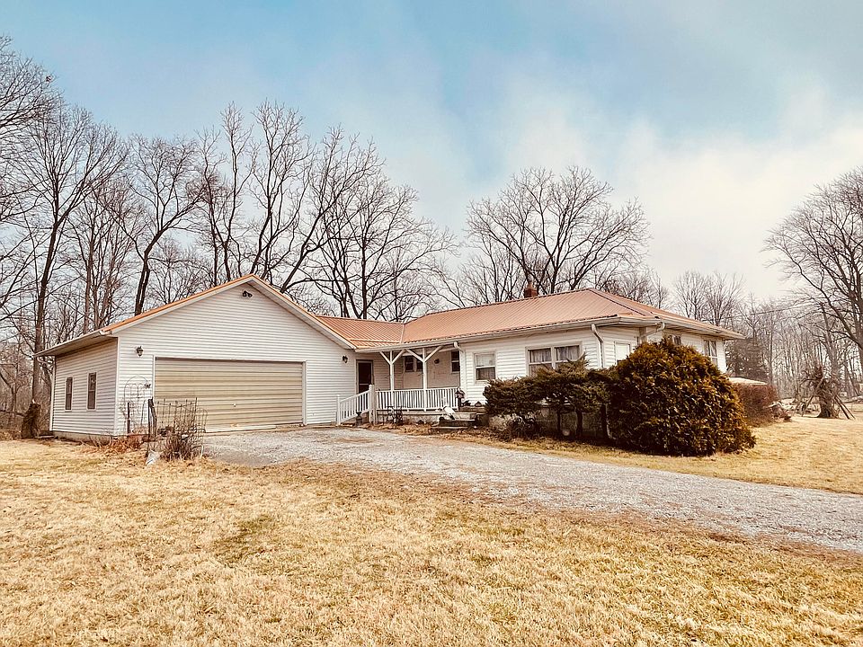 Great opportunity here. Almost 1700 Square feet with an oversized 2 car garage you are going to love. With a little work the chicken coop could give you extra storage for your tools and toys. 3.5 acres gives you room to roam or add a fence for your favorite animals. Home has low maintenance vinyl siding and metal roof. Interior will needs some cleaning and updating.