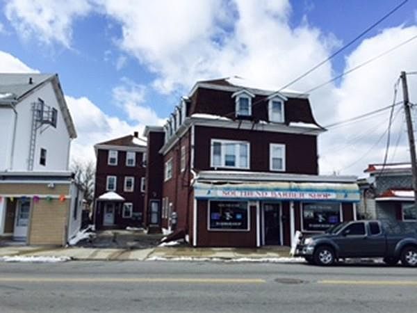 Tiverton Line. 2 houses on 1 lot. Storefront pays $600.00/mo. The front house include a storefront presently used as a barber shop and 2 apartments. The building has a large storage unit in the back with potential for an additional rental. The back house is a 3 family. New roofs, gutters & new windows in back house. Some units have been renovated. Long term tenants. Great access to highway.