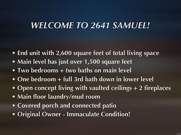 WOW! Beautiful villa that has been kept in immaculate condition by the original owners. The one has it all! Custom entryway that is wider than the original plans, open floor plan, vaulted ceilings, three bedrooms (two up, one down) with three full baths, two fireplaces, gorgeous kitchen with beautiful cabinetry, Expansive master bedroom with crown molding and large walk-in closet, open staircase leading down to an AMAZING finished lower level that includes a large living room, built-in kitchenette, the 3rd full bath and a finished bonus room that could be used as the 3rd bedroom which also has a walk-in closet and you still get plenty of unfinished storage space. Back upstairs you have a laundry room off garage connecting to kitchen, covered patio off kitchen and lower patio perfect for the BBQ. Total finished living space is just over 2,600 square feet! Stunning!