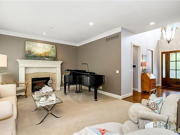 Gorgeous, meticulously maintained, CUSTOM-built home w/ so many intentional details like bullnose corners, 10' ceilings, wide-plank oak flooring, window shutters, floor-to-ceiling stone FP, horizontal beams in FINISHED BASEMENT and garage to bypass support posts and reinforced garage doors. Bright, open KIT with large island, Thermador range, ASKO dw, walk-in pantry and expanded breakfast area. In-ceiling speakers also wired to back patio. Spacious primary suite overlooks trees, has large ensuite w/double vanity and walk-in closet. Secondary BRs are generous w/ build-ins, walk in closets and ensuite. Upstairs in carpeted. All carpeting throughout was just professionally cleaned. FINISHED LL: 9' foundation walls, tall ceiling, egress window well set back allowing for maximum light exposure. Includes FAMILY RM, wood paneled & insulated MEDIA or music RM, non-conforming 5th BR, full bath and TONS of clean storage space. LL has plumbing for a bar and wiring for additional flat screen. Beautiful yard includes stone pavers and tall trees lending privacy to main living area. Plenty of space for kids to run and wired for invisible pet fence. Newer roof (impact-resistant shingles) and HVAC (w/ humidifiers). Neighborhood amenities include playground, swimming pool and tennis courts. Highly ranked Blue Valley School district. Close to school, shopping, dining, entertainment, parks and trails.