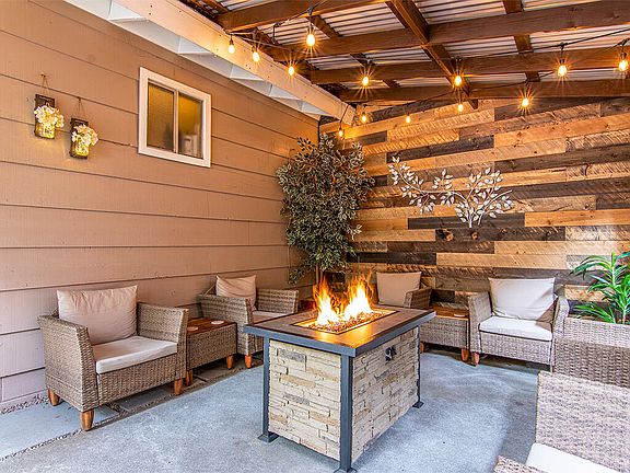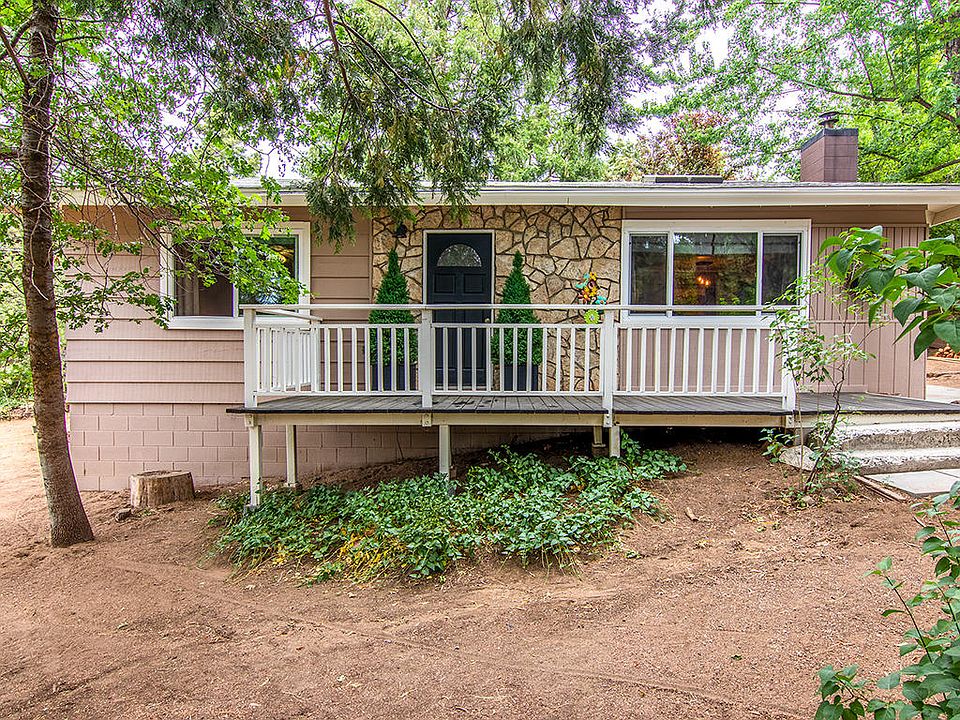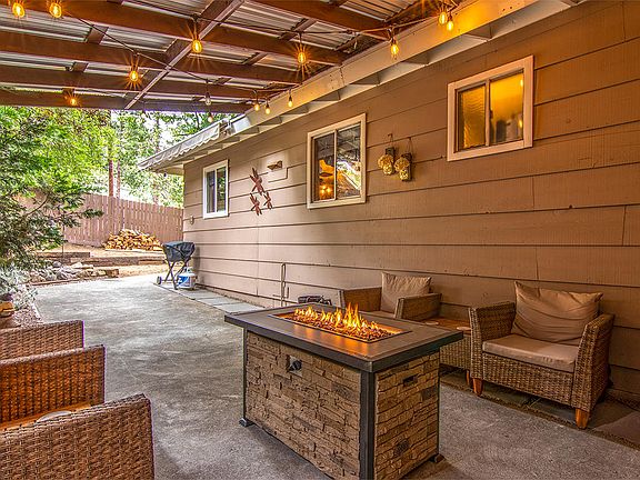Stunning designer remodel on corner lot, tranquil outdoor entertainment area, walk to town. This home radiates class and charm with mountain chic designer touches everywhere, including a peaceful secluded outdoor entertainment area. All this on a large corner, abated tree-scaped lot, with an easy walk to town, restaurants, and schools. Enter the inviting great room with skylight, calm color palette, custom rock fireplace with insert, and polished laminate flooring throughout the home. Enjoy the all-new kitchen - beautiful cabinetry, butcher block counter tops and adjacent laundry area with new washer/dryer stack set and storage. A highlight of the property is the outdoor seating and entertainment area, with a translucent cover to protect from bright sun and rain. The property also features a generous storage shed and a long off-street driveway allowing tandem parking for multiple vehicles or RV. Street parking is also available on corner street. This impeccably maintained property shows like a model home, with pride of design and ownership. Welcome home! Home is occupied! Appointment Required.