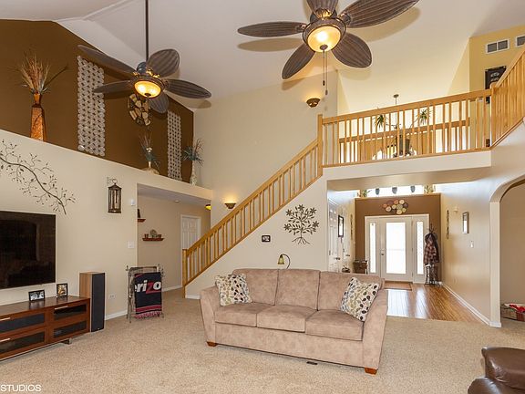 Welcome Home that's how you will feel when entering this stunning home. Two story foyer w/a large palladium window makes for a bright & airy feeling upon entering. A view of the stone fireplace & soaring great room ceiling w/skylights adds to the dramatic feeling of the entrance. Formal dining room w/double panned ceiling and built-in lighted display case is another of the many upgrades this home has to offer. Large eat-in kitchen w/an abundance of cabinets & counter-tops, built-in oven, range & refrigerator all stays. Loft overlooks the great room to make for a wonderful home office. Master bedroom suite w/private master bath, w/tub, separate shower & walk-in closet. Two additional bedrooms w/neutral decor, second full bath & an actual first floor laundry room w/plenty of space. Basement is finished with a huge recreation room, dry bar, 4th bedroom & another full bath plus an unfinished area for storage or your ideas. Huge deck, built-in fireplace and gas grill stays. Better hurry !