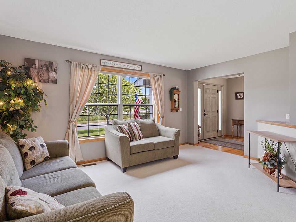 The search is over! Welcome to 26410 Woodcrest Lane in Elko, where space, private views, & convenience meet comfort & function. This two-story home in the award-winning Lakeville School District offers 4 bedrooms all on one level, providing the ideal layout for today’s busy households. With over 3,400 finished square feet, you’ll find generous living areas, a remodeled kitchen, and a finished walk out lower level perfect for entertaining or relaxation. Recent improvements include a full kitchen remodel (with new hardwood floors), new appliances, new front entry door, a new sliding door to the deck, & a roof less than five years old. Step outside to enjoy the newer Trex deck overlooking the private backyard—ideal for gatherings or quiet evenings at home. The oversized yard is perfect for those who love play, garden, or landscape. With a 3-stall garage and quick access to I-35, Elko Speedway, and Boulder Pointe Golf Club, this home combines country charm with everyday convenience.