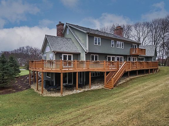 Floorplan and square footage on tour/3D tour! Incredibly beautiful and convenient Barrington Oak Meadows opportunity for that special buyer. 2 acre wooded property, sweeping front yard, so close to town and schools. Beautifully appointed and maintained home w/6,000+ sq ft, 3 levels of living space, 5 BRs, 3.2 BAs! Terrific gourmet kitchen w/2 islands, skylights & recessed lighting, stainless appliances, eating area with bar/wine refrigerator and doors to extra large deck. Stunning, spacious Dining Room, nice big Living and Family Rooms with fireplaces/gas logs. Substantial, pretty woodwork, hardwood floors throughout 1st and 2nd floors. Light and bright Library and Study on first floor .. nice to have two lovely, spacious work spaces! Primary retreat has vaulted ceilings and fireplace w/gas logs. 3 other wonderful bedrooms on 2nd floor. Walkout lower level offers so much for family and friends to enjoy! 5th bedroom and full bath, Exercise room, game room, big rec room and media viewing area, even a 2nd Kitchen area with granite breakfast bar. Fine woodwork and touches throughout. So much natural light! 1300 sq ft deck increases and enhances entertainment opportunities. 3 1/2 car garage with showroom flooring. Central vac too! This super home sits up high amongst towering mature trees. Please come, appreciate and enjoy!