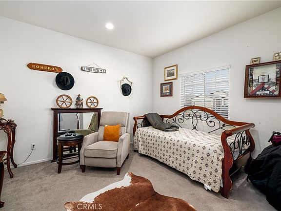 Come Live at this Amazing 55+ Retirement Community in Menifee perfectly named “The Holiday”! Built in 2018, this 1665 sq. ft. home features 2 bedrooms, 2 baths and a Den/Office ready for you to make your own. Great location in the community; just down the street from the gated community pool. Covered front porch entry. Light and bright throughout. Beautiful tile flooring throughout the common areas and carpet in the bedrooms. The open concept kitchen leads into the family room. The large kitchen has granite counter tops with an island, stainless appliances, & walk in pantry. Spacious laundry room with lots of extra storage, folding space and possible craft room. The primary suite is light and bright with double sinks in the bathroom, large walk in shower & generous sized walk in closet. Additionally, this home has a tankless water heater and leased solar. The backyard is a peaceful area with Alumawood Patio cover, grassy area with drip sprinkler system, 2 lemon trees and a separate gazebo area for plenty of room for entertaining. Drought-tolerant landscaping in the front yard and a 2 car attached garage. Resort style community pool/spa, recreation center, gym, club house, and outdoor BBQ area. Additional HOA amenities include ground maintenance & landscaping of the front yard. Close to freeways, entertainment, shopping, and hospitals. Come see this home today!
