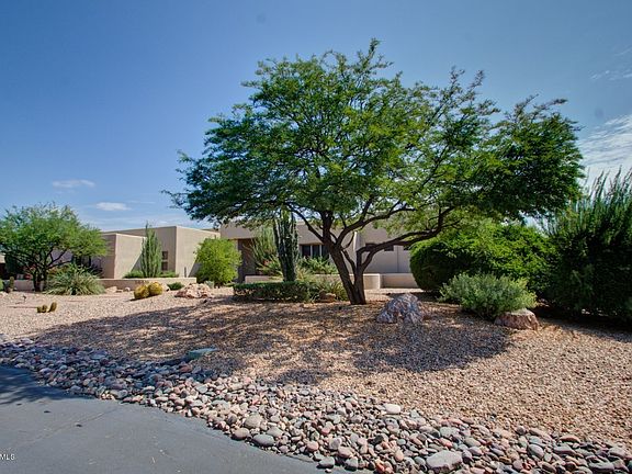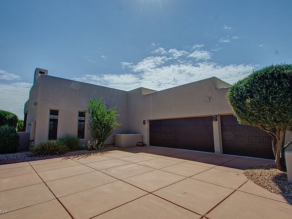 Architecturally designed home perfectly situated to maximize the beautiful views of Four Peaks.Double entry door, which is also screened and double-sided outdoor fireplace that feels like it is inside! Three BR, office,eat-in-kitchen/family room,wet bar, dining room as part of the great roomw hich has a beautiful used- brick wall.Built in bookcases and spacious open area contribute to the uniqueness of this property along with oversized 3 car garage (new doors and opener !). A more peaceful outside patio setting would be hard to find!Patio spans the length of this home offering sensational views and multiple entertaining locations.A beautiful pool completes this special property !!