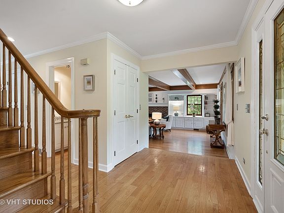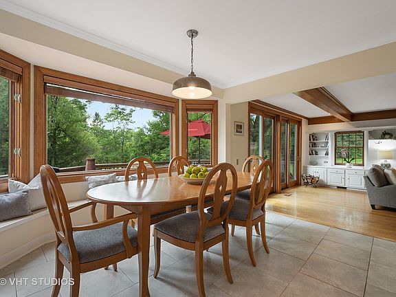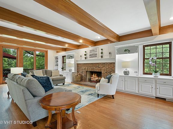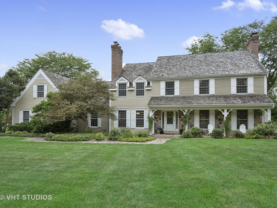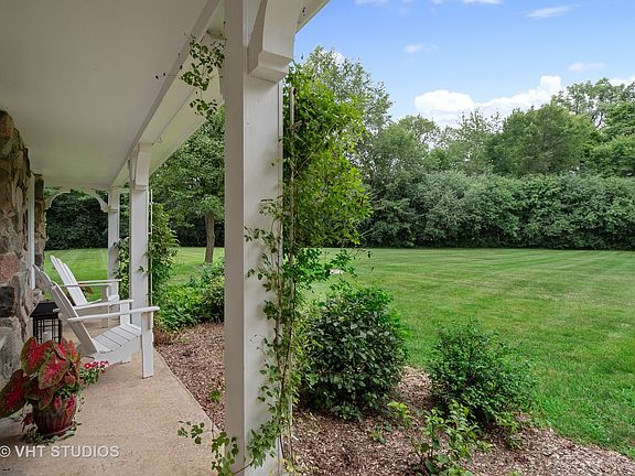 Lovely cedar & stone 4 bedroom, 3.3 bathroom Colonial offering wooded retreat setting yet close to town & neighboring Barrington Oak Meadows. Amazing family room features a gorgeous beamed ceiling, brick wood burning fireplace, built-ins, wet bar & 2 sliding doors out to the deck. Nice flow to the kitchen with on-trend gray cabinetry, granite countertops, stainless steel appliances, island/breakfast bar & breakfast room with bay window & built-in bench seating. The first floor home office also has a fireplace & could easily double as a guest room with its adjoining full bathroom. Spacious master suite has wood burning fireplace (#3), hardwood floors, loads of closet space & updated spa bath with dual vanities, walk-in shower & whirlpool tub. Three additional bedrooms share the updated hallway bathroom. Also on the 2nd floor is an awesome flex space which could be purposed as needed as a playroom, 2nd office, exercise space or even a newly sought after homeschooling room. Light bright, walkout basement has generous recreation & game room spaces. Charming covered front porch & deck offer picturesque views of the 2+ acre property throughout the seasons. 3-car garage, front & back staircases, powder rooms on all levels, zoned HVAC, 2 hot water heaters & generous closets & storage. Close to village, shopping & dining, Metra, Park District, Library & A+ Roslyn Road Elementary & BHS.