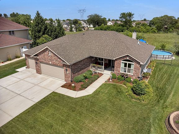 Multiple offers received. Highest and best offers due by 8-14-2023 at 5:00 pm. Welcome home! Thoughtfully designed and meticulously maintained, custom-built ranch located in McKinley Oaks Subdivision. The open-concept floor plan is perfectly designed incorporating the kitchen, living room, dining area and sunroom. The custom kitchen comes well-equipped with granite countertops and backsplash, oversized island, tailor-made bakers lift cabinet, pantry, and stainless-steel appliances. Built in 2015, features include a split bedroom layout, hardwood floors throughout, solid 6 panel doors and trim, arch top windows, handicapped accessible 36-inch doors and hallways, a remote blind for the stairway window, fireplace, central vac, whole house filter system, water softener, 30 AMP RV hookup, electric cook-top with optional gas line installed should you choose to utilize it, designated furnace for the garage, direct basement access from the garage, and much more! The expansive, full basement is partially finished with a full bath, bedroom, recreation room, and plenty of storage options. The beautifully landscaped yard comes complete with perennial gardens, sprinkler system, fenced-in yard, maintenance-free deck, shed, and above-ground heated pool. The property is adjacent to the wetlands providing a private green space and serene backyard oasis. No detail was overlooked! Impeccably built home with your comfort and entertaining needs in mind. Take advantage of the many nearby amenities such as shopping, dining, and interstate access. Located within minutes of the Channahon Park District, playgrounds, and bike paths. No HOA fees! Accepting all forms of financing-Conventional, FHA, VA, and Cash. Schedule your showing today!