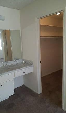 Ready to move in. Single level upper unit in a beautiful park like community, Central air/heat, granite and marble counter tops, Master bedroom has walking closet, full washer and dryer hookups with laundry area inside the unit, large patio area with an attached 1 car garage and additional carport and HOA pool. tenant pays all utilities