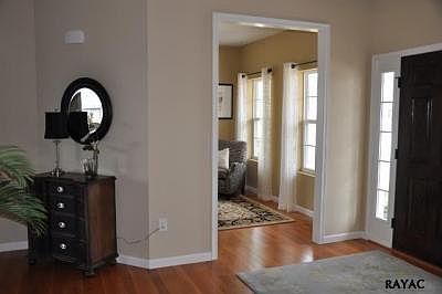 Stunning former model home on cul-de-sac, never occupied. Spectacular kit. with center island, dining area with doors to deck, all appliances, office with built-ins,spacious formal DR, FR with gas fireplace, gleaming hardwood floors, fabulous master suite with walk-in closet, luxurious bath with garden tub, separate shower, all bedrooms have walk-in closets.